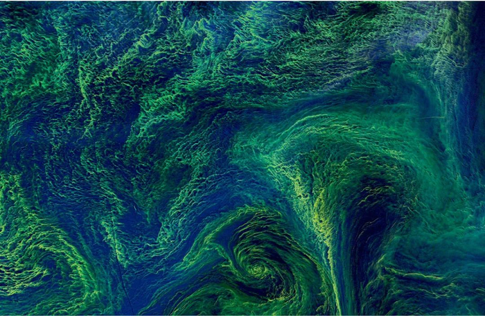 这不是一幅油画,而是从太空中看到的波罗的海,巨量污染物流入海中,形成大范围的蓝藻水华,在海面形成缺氧的死区。
