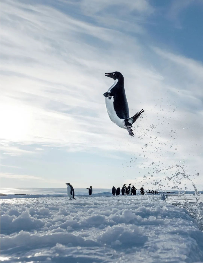南极阿德利企鹅纵身一跃