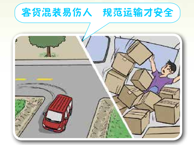 客货混装是严重的违法行为。无论是货车还是客车,客货混装行驶都会严重影响行车安全,在运输过程中,易发生货物捆绑不牢、滑移等现象而挤伤人。一旦遇到紧急制动或者急转弯时,不仅易引发货物倾倒压伤乘车人员,还极易因货物滑移至一侧使车辆重心偏移,导致翻车等交通事故。