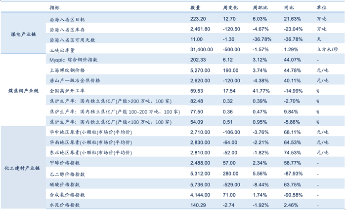 表3:本周煤炭下游情况速览