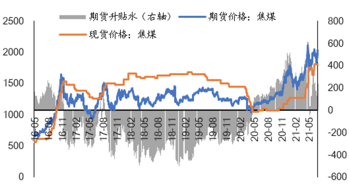 ★ 截至7月16日,焦煤期货活跃合约较上周同期上涨178.5元/吨至2035.0元/吨,期货升水235.0元/吨。