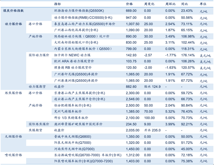 表1:本周煤炭价格速览