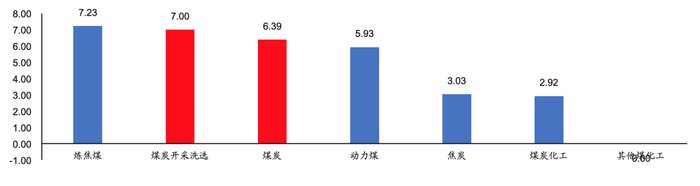 ★ 本周煤炭开采洗选板块上涨7.00%,动力煤板块上涨5.93%,炼焦煤板块上涨7.23%;焦炭板块上涨3.03%,煤炭化工上涨2.92%。