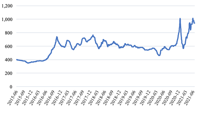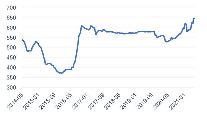 图 6:秦皇岛港:平仓价:动力末煤(Q5500):山西产(元/吨)
