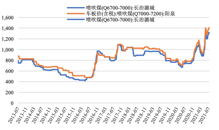 图16:喷吹煤车板价(含税)变动情况(元/吨)