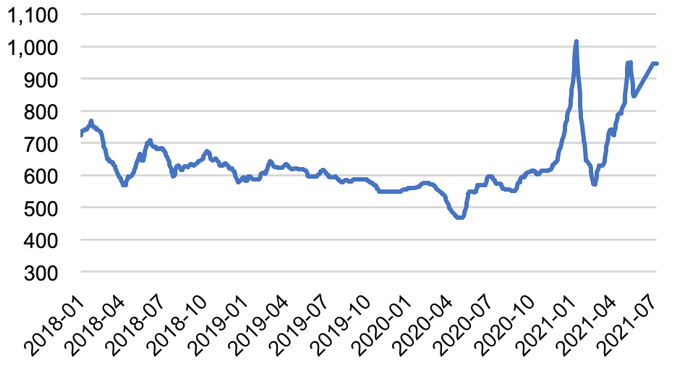图 37:全国甲醇价格指数