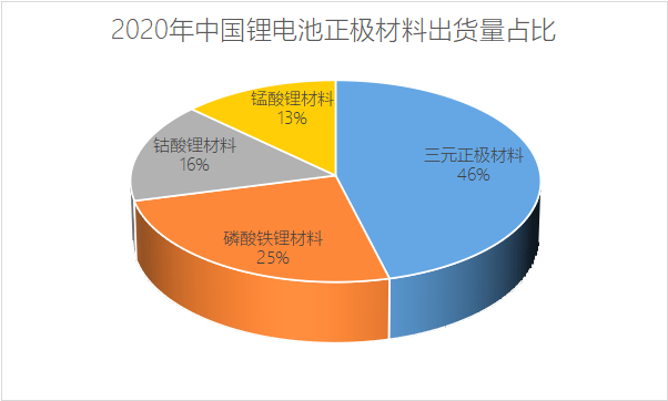当前主要应用于电动车领域的,是三元材料以及磷酸铁锂两条技术路线。在2020年锂电池正极材料出货占比中,分列第一(46%)和第二(25%)[5]。