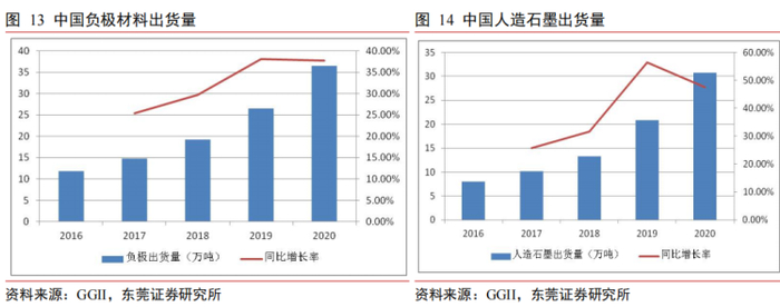 与正极材料不同,锂电池负极虽路线同样众多,最终产品却很单一,人造石墨是绝对主流。数据显示,2020年中国人造石墨出货量约为30.7万吨,在负极材料出货总量中的占比高达84%,较2019年水平进一步提升5.5个百分点[3]。