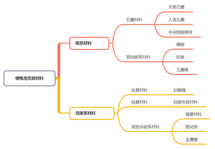 负极材料按照所用活性物质,可分为碳材和非碳材两大类: