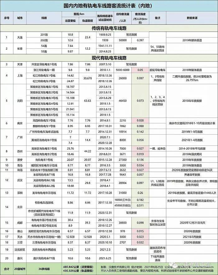 实际上,除了北京、上海、广州、成都、武汉等大城市,其他城市的单条有轨电车线路日均客流基本都小于1万人次。即使上述大城市的有轨电车线路,客流强度也较低。