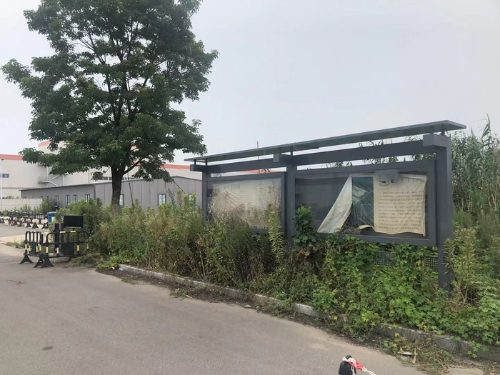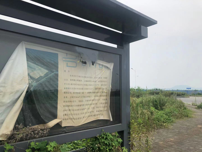 2021年7月16日,时代财经在拜腾汽车南京工厂的南门外看到,门外的通告栏几乎被荒草覆盖,里面张贴的拜腾汽车宣传海报已经破烂不堪,唯一可以辨识的资料“倔强”地印证着拜腾汽车的“辉煌”。