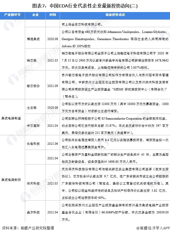 EDA行业产业链代表性企业最新投资动向