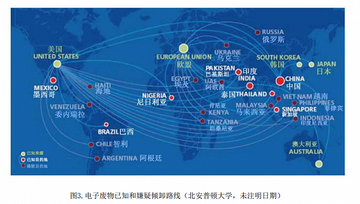 《报告》显示,按照当时的估计,中国接收的电子废物最多——约占70%且呈上升趋势。然而,至于这些越境电子废物流到底有多大,却没有确切的数字(Ni和Zeng,2009年)。此外,由于亚洲加强了监管力度,估计未来会有更多的电子废物运往西非国家。