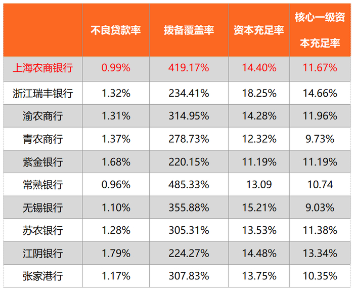 银保监会数据显示,截至2020年末,商业银行核心一级资本充足率为10.72%,较上季末上升0.28个百分点;资本充足率为14.7%,较上季末上升0.29个百分点。其中,农商行在业务规模扩张中对资本补充的需求更加明显。截至2020年末,资本充足率方面,上市农商行中的常熟银行、无锡银行、渝农银行和江阴银行比上年末均有不同下滑。上海农商行资本充足率处于上市农商行中游水平,未来也存在补充资本金的需要。