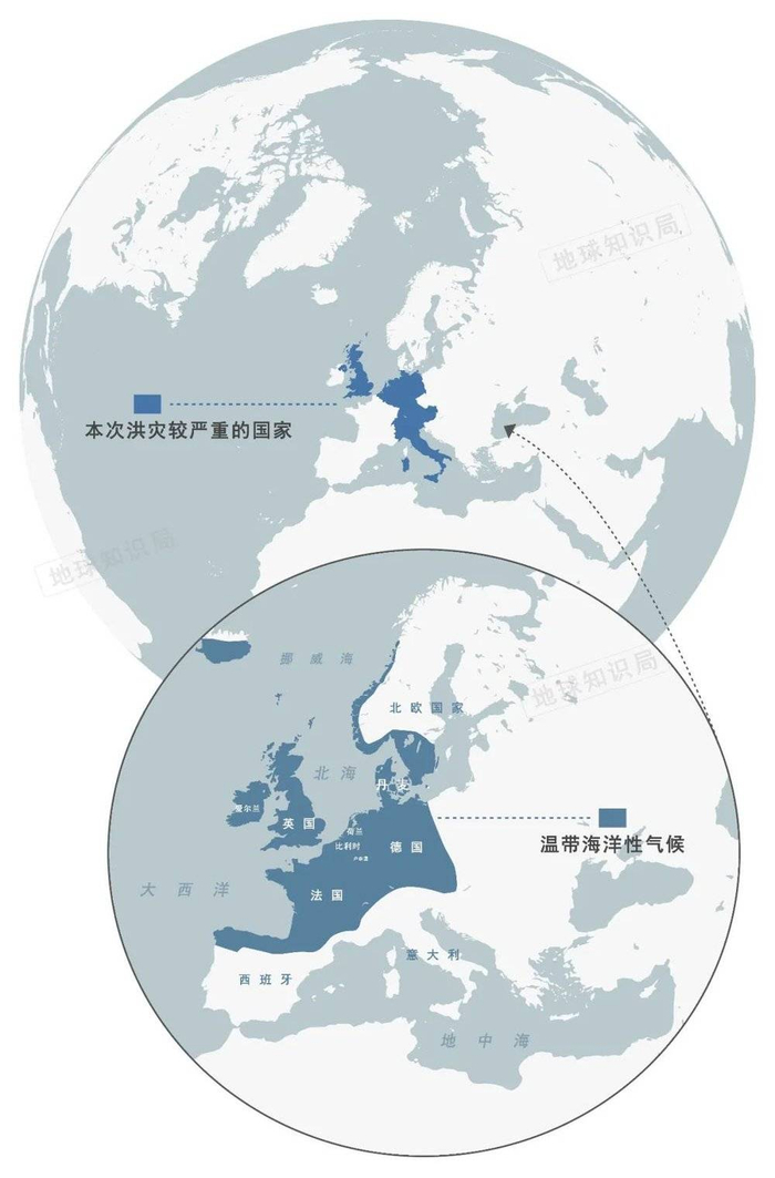本次欧洲洪灾受灾国与温带海洋性气候为主的国家其实有相当的重合,尤其以德国和低地三国为主▼