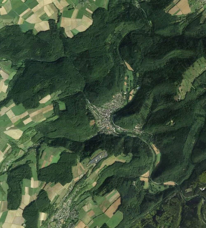 赖费尔沙伊德镇周边,如果小镇恰处低洼之处,夜间暴雨洪水恐损失惨重(图:google map)▼