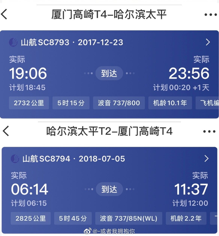 例如,记者注意到,因为这次的话题讨论,许多旅客晒出以往乘坐山航航班的行程截图,截图显示,哪怕比计划时间晚起飞,航班也可以做到提前约半小时到达。
