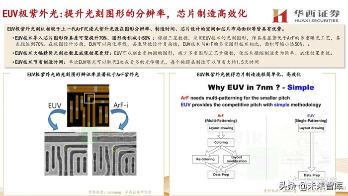 刻蚀工艺:通过多重图形工艺“多次刻蚀”,使先进制程芯片线距得以持续微缩。预计2020年EUV光刻机导入后,多重图形工艺仍然将继续沿用。