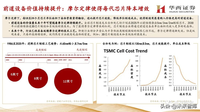 前道设备价值持续提升:摩尔定律使得每代芯片降本增效