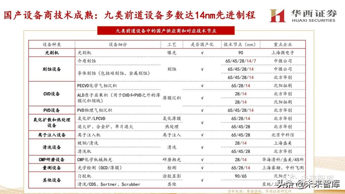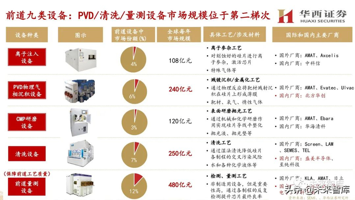 三、九类前道设备——国产商最具潜力的领域:刻蚀、CVD、PVD、清洗、量测