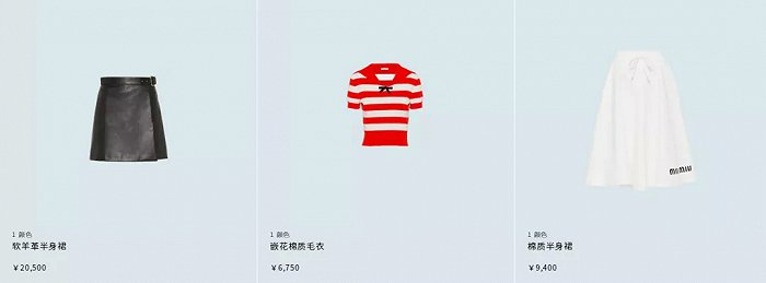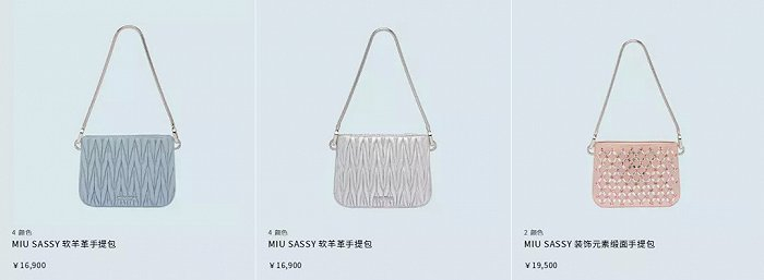 而Miu Miu的定价路线却不同,不走轻奢的定价。成衣售价基本在万元以上,手袋的售价也基本在万元以上,鞋履的价格也保持在5000元以上,售价基本与Prada持平,保留了自身“奢侈品牌”的定位。
