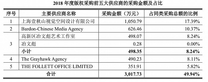 在读客列出的版权采购前五大供应商采购金额及比例中,上海混知文化传播有限公司(2020年4月更名,此前用名:上海壹秋山视觉空间设计有限公司)。其对应的作品,就是“半小时漫画”系列。