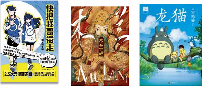 磨铁的漫画/动漫绘本类图书,有《龙猫》《千与千寻》《阿狸:梦之城堡》 《步天歌》《绝对小孩》《快把我哥带走》《非人哉》《木兰辞》等作品。磨铁引用开卷信息统计数据,表示其在成人绘本漫画码洋占有率为12.64%, 排名第三位。