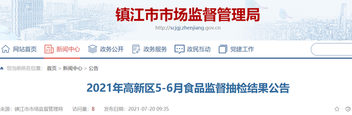 原标题:江苏省镇江市润州区市场监督管理局(高新区)区本级食品抽检60批次 不合格1批次