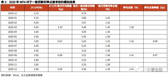 进一步,我们可以根据MPA考核机制,通过试错模拟,复盘2020年各个月份一般贷款利率的近似曲线。可以清楚的看到: