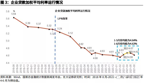 自去年4月份至今,1Y-LPR持续维持在3.85%并未改变,而截至2021年Q1,企业贷款加权平均利率为4.63%,较2020年4月份下降约18bp。即,在LPR维持不变的情况下,贷款利率依然出现了明显下行,这主要与央行推出的MPA点差考核有关。