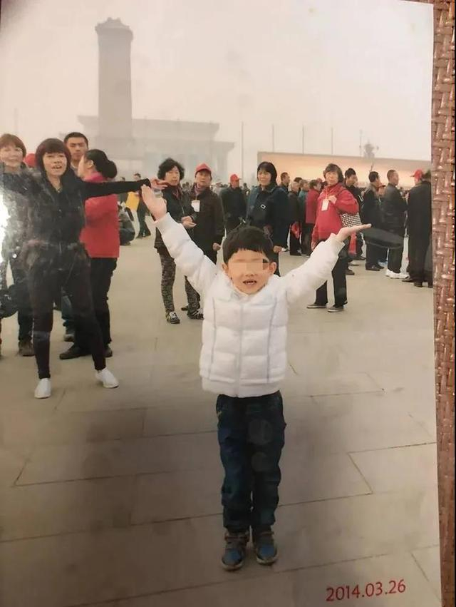 2014年,赵月兰(左一)带优优到北京旅游。 受访者供图