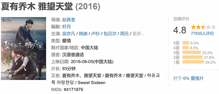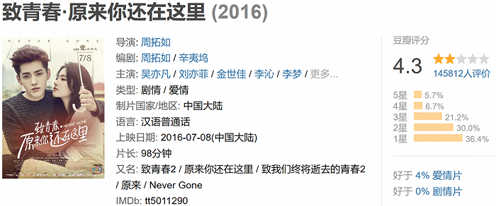 吴亦凡参演的作品的豆瓣评分