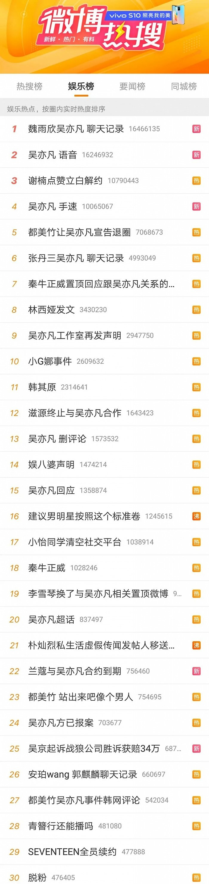 微博热搜榜上吴亦凡相关的词条占了大多数