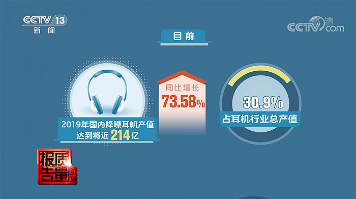 在这个背景下,国内降噪耳机市场在近几年得到了迅速扩张。央视《每周质量报告》称,2019年国内降噪耳机产值已将近214亿,同比增长73.58%,占耳机行业总产值的30.9%。同时,现阶段我国降噪耳机生产厂家已有300家左右。