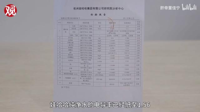 观察者网主讲人董佳宁还实地探访了娃哈哈集团的分析中心,据了解,娃哈哈分析中心早在2005年就通过中国合格评定国家认可委员会(CNAS)的认可,CNAS是国际互认体系的一员,其覆盖103个经济体,占全球经济总量的96%以上,也就是说,娃哈哈分析中心出具的检测报告,全球范围内许多国家都是认可的。在娃哈哈分析中心,董佳宁邀请专业人士对娃哈哈纯净水进行了水质检测,检测的最终数据显示该娃哈哈纯净水的测验样品导电率达到了1.56,这完全符合实验室用水(水的导电率≤5)的标准,达到了实验室用水级别。