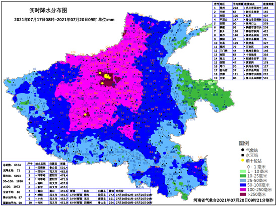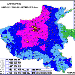 中央气象台预计,7月20日夜间至22日白天,河南中北部仍将有强降雨天气,累计降雨量50~150毫米,局地250~350毫米;降雨最强时段在20日夜间至21日白天;22日夜间,河南此次强降雨过程基本结束。