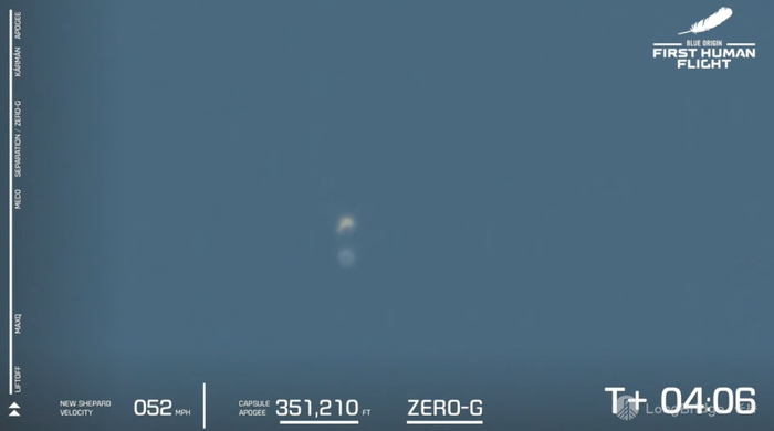 贝佐斯此次整个太空之旅耗时约11分钟。新谢泼德号稳步加速至三倍音速以上,在脱离助推器后,太空舱达到100千米以上的高度。而宇航员们可以在此时解开安全带,体验几分钟的失重感觉,同时观赏窗外的太空景观。