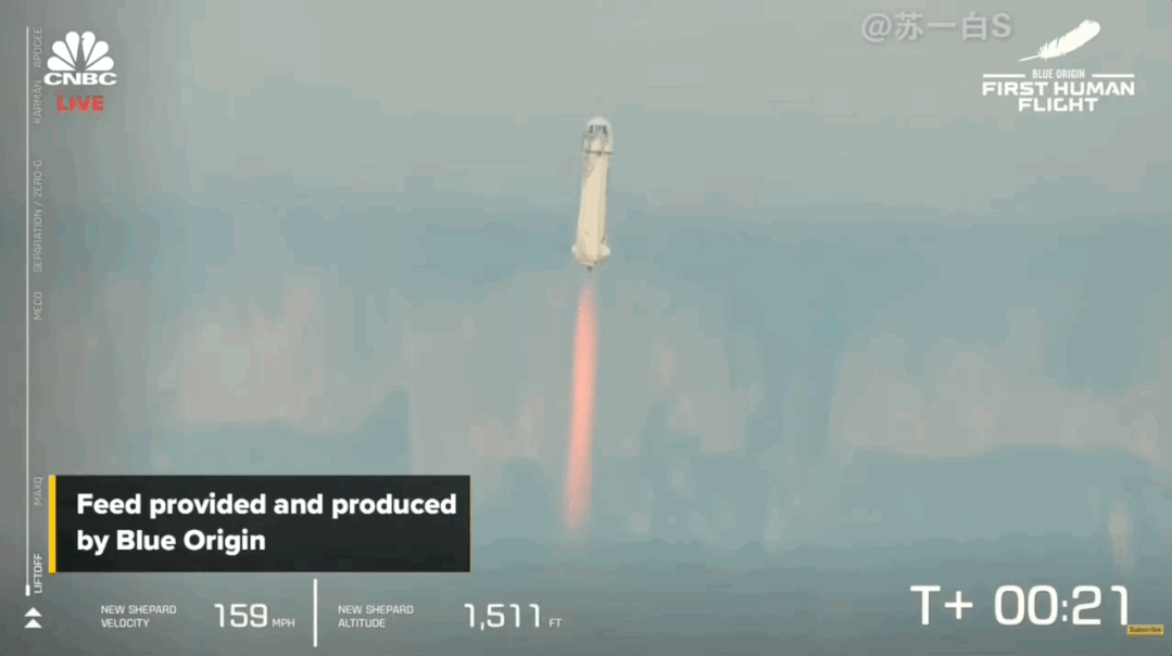 4分钟后,新谢泼德号太空舱到达卡门线,也就是国际公认的太空边界。