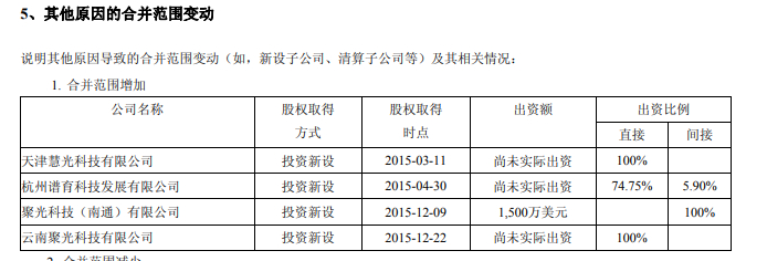 《每日经济新闻》记者还注意到,聚光科技还曾计划100%持股云南聚光。聚光科技2015年年报显示,云南聚光成立于当年12月22日,公司持股当时比例显示为100%,只是尚未实际出资。启信宝上的云南聚光2015年年报则显示,聚光科技持股比例是51%,中皇环保、云南凯威特投资有限公司(以下简称凯威特)持股25%、24%。