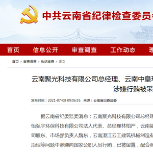 云南省纪委监委网站披露,叶国兵因涉嫌行贿,已被留置,配合调查。其身份为云南聚光总经理、云南中皇环保产业股份有限公司(以下简称中皇环保)副董事长。