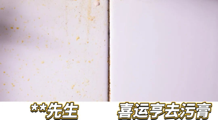 过了几分钟,充分分解油污后再去擦拭,普通去污膏用完还残存着一些油点,用喜运亨就能擦出光洁的墙面,可见这款去污膏的清洁力真的强。