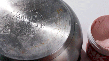 再把锅的内部擦拭一遍,本来残留着没洗净的水垢和油污印,但擦上几下再一抹,光洁的像刚买来的新锅,这抛光效果绝了!