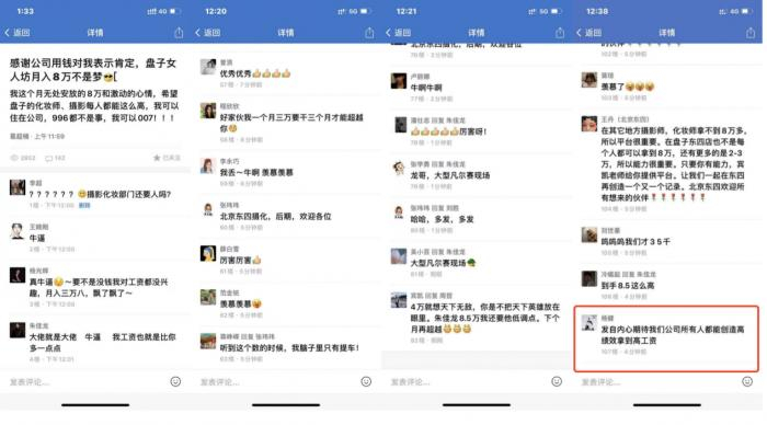 盘子女人坊集团总部人事负责人告诉记者,网上流出的月薪8万工资条截图的员工的确破了盘子女人坊成立以来摄影师岗位拿到的最高薪资。该人事负责人表示8万的单月薪资虽不常见,但是在盘子女人坊月薪稳定在3—5万的摄影师、妆造师及后期数码师却是常态。
