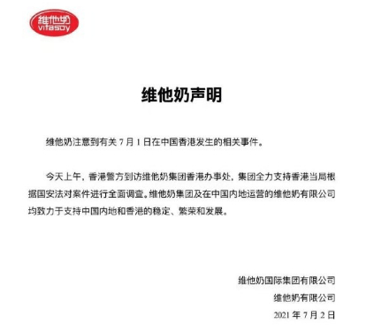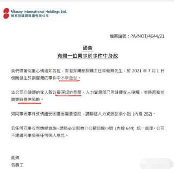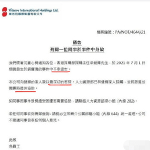 7月初,因网络流传出维他奶公告员工事件文件,被指言论不当,因此,维他奶引起了舆论质疑,接连发布两则声明公告。