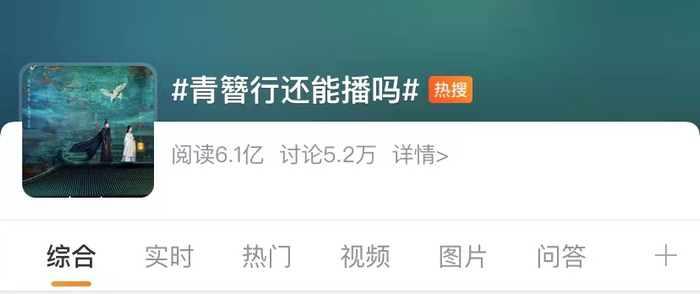 7月20日,吴亦凡事件持续发酵,话题#青簪行还能播吗#也上了热搜。