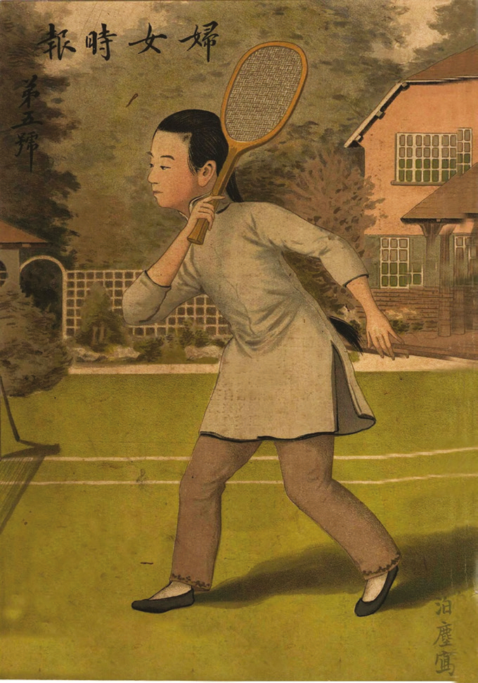 第四章和第五章都对日常生活的细节,进行了不厌其烦的描述。此外,还运用了图像分析的方法。例如打网球的女学生,特别展示其“天足”,表明女性参加户外体育活动。