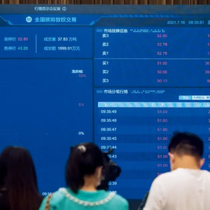 7月16日,武汉的全国碳排放权交易实时信息画面。当日,全国碳排放权交易市场上线交易启动仪式以视频连线形式举行,在北京设主会场,在上海和湖北设分会场。图/新华