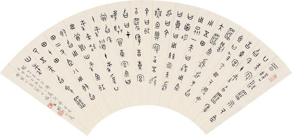 近代王福庵临《㫚鼎》扇面戊寅大暑