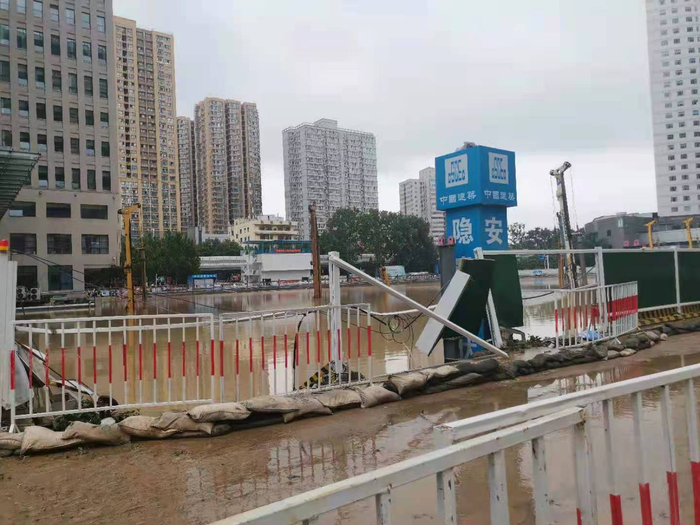 此次受影响较大的是其河医院区,由于正好位于立交桥的位置,积水问题严重,20日下午的时候,医院的积水就没过膝盖,稍晚时水都把一楼淹没了。