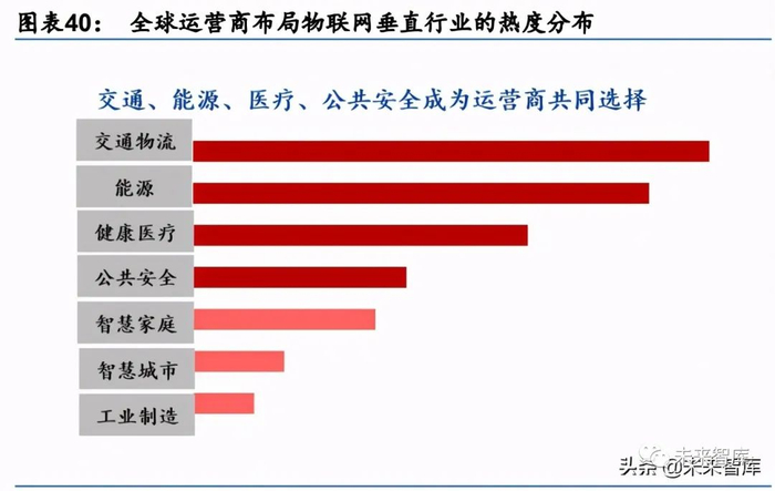 参考海外经验,交通物流、能源、医疗、公共安全、智慧家庭、智慧城市、工业制造是运 营商的重点选择领域。交通物流、能源等均属于 B2B 模式,受政策及需求拉动明显,且具 有明确的商业模式和盈利模式,因此发展相对优先于智慧家庭和工业制造等垂直细分领域。另外,智慧家庭、工业制造等 B2C 领域,虽然现阶段商业模式尚不明朗,但海外运营商在 这些领域也做了相应的布局。
